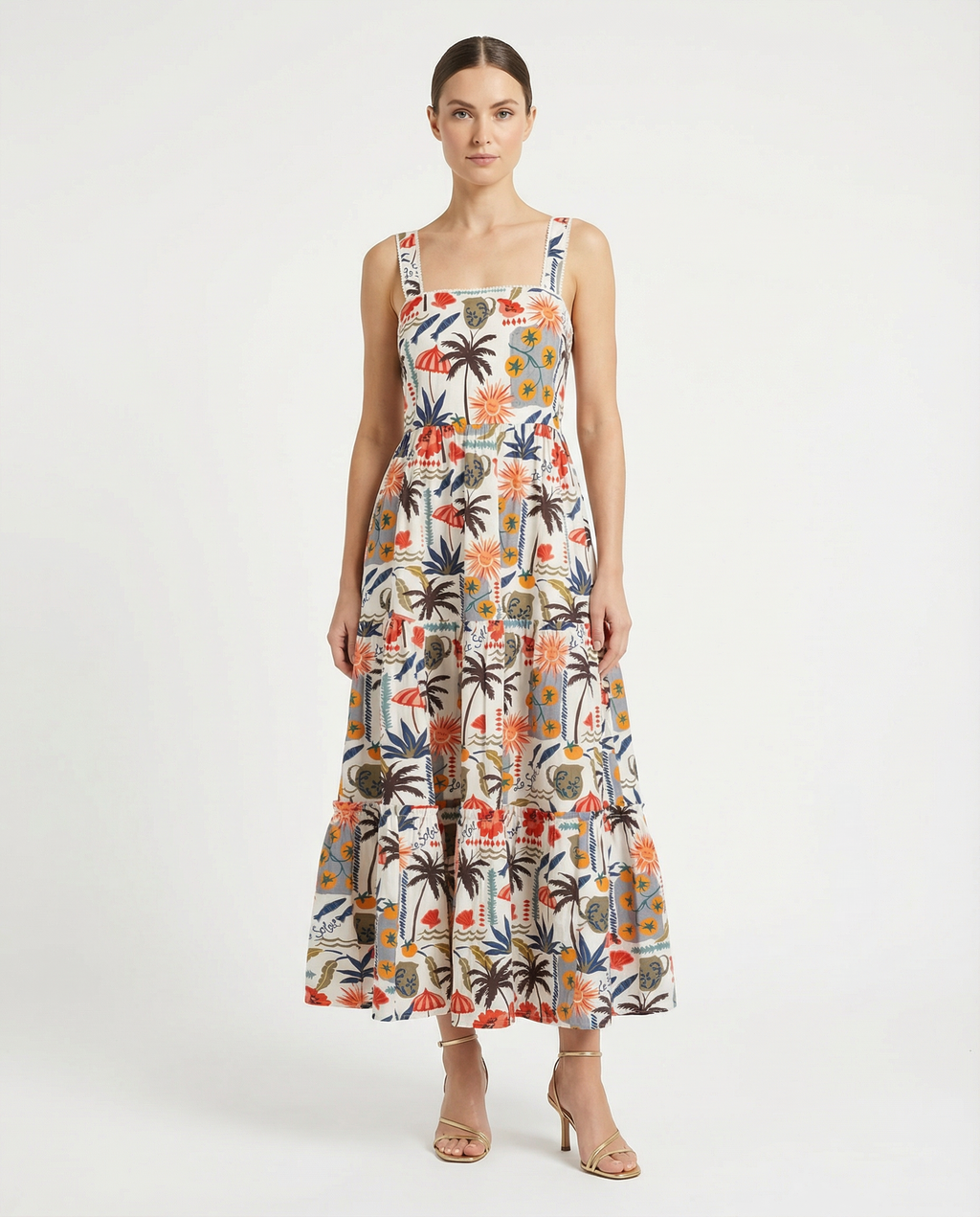 Our Gari dress has a breezy, tiered silhouette perfect for slipping on and off over your swimsuit when on vacation....
