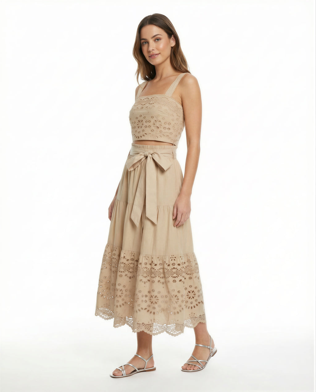 Light, breathable, and made for warm-weather days, the Jenni Skirt is the perfect mix of comfort and chic. This high-waisted, tiered cover-up features an easy pull-on fit, handy pockets, and a subtle front leg slit for just the right amount of allure. Whether paired with a swimsuit or a favorite tank, it’s your go-to for effortless style from brunch to beach to cocktails.