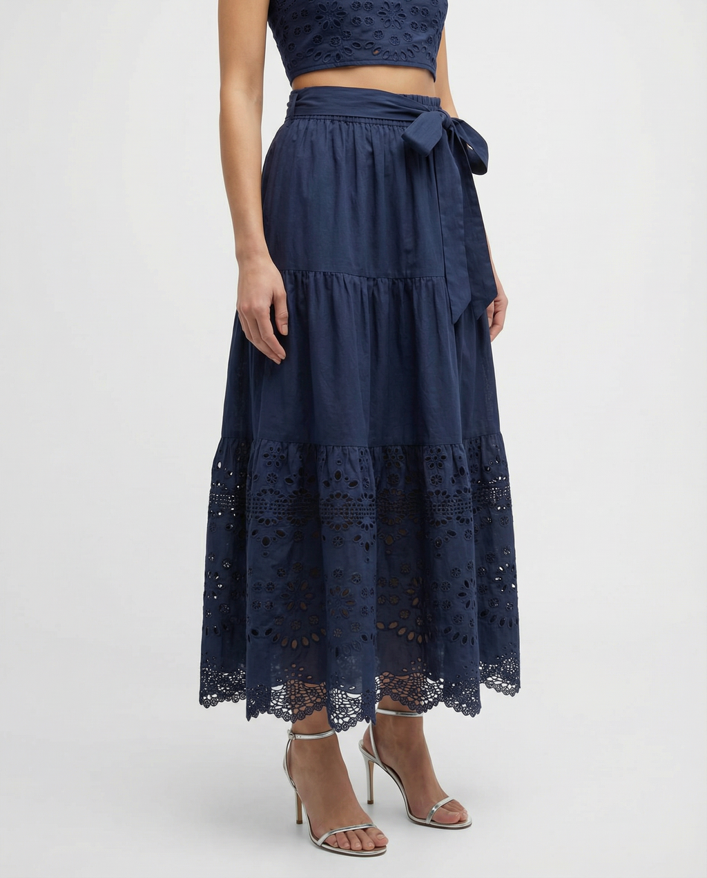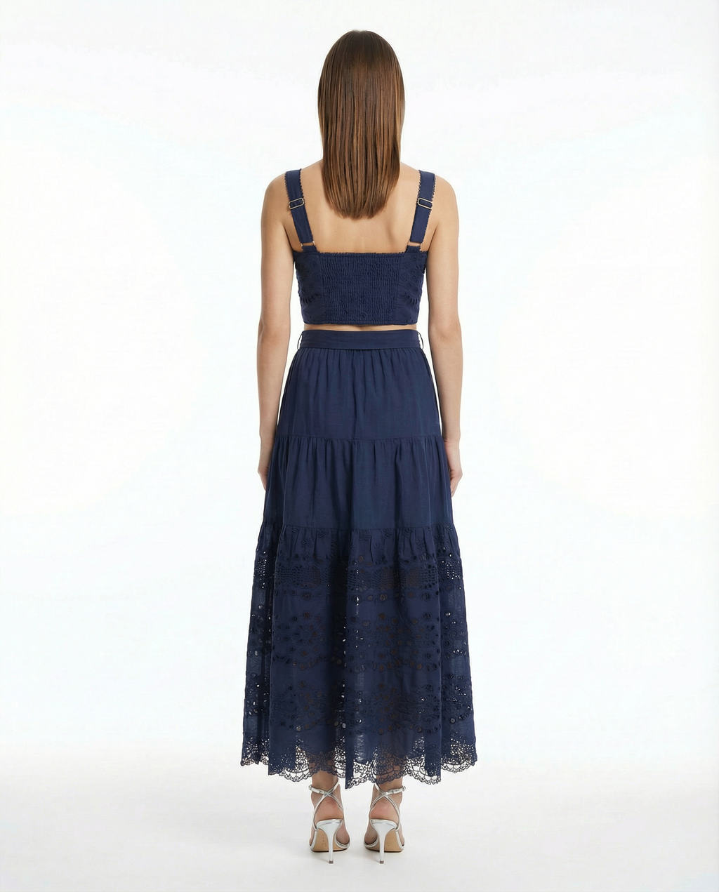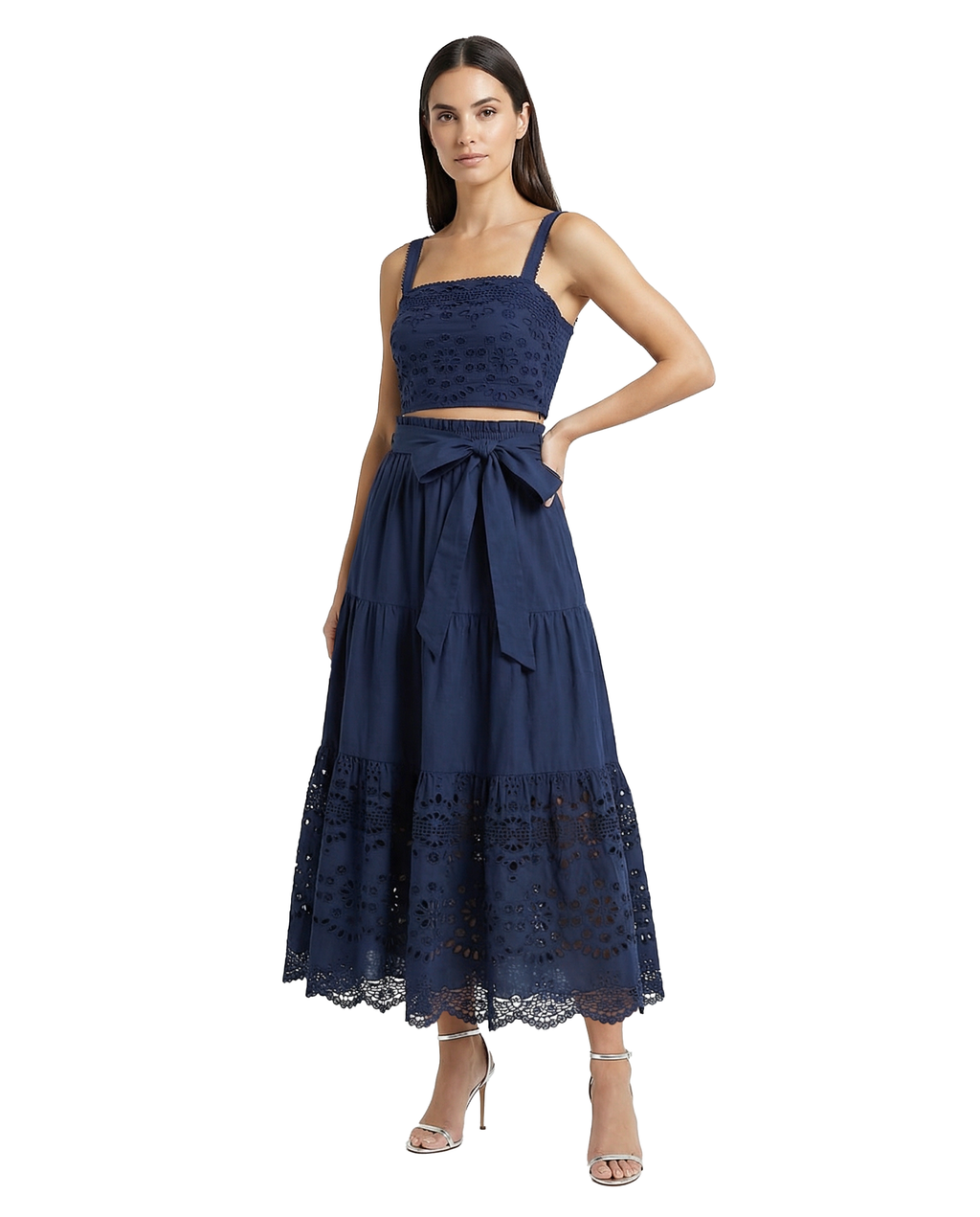 Dani Top + Izzy Skirt Set in Steel Blue Eyelet