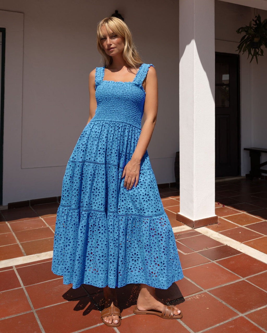 With a flattering smocked bodice, adjustable straps, and a playful tiered skirt, this dress combines comfort and style in one easy piece. Pair it with sandals or sneakers for a look that is laid-back yet ready for anything the day or night brings.
